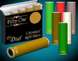 Fifty-One™'s unique electric cigarette cartridges are the equivalent of two packs of cigarettes, and also include a built-in atomizer!
